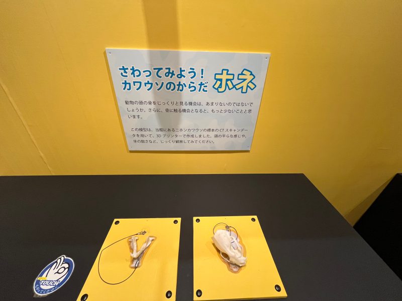 カワウソは「イタチ」の仲間で、肉食性が強く、流線型の体を持っているため、泳ぐのが得意な動物です。他にもカワウソについて深く学べる展示がたくさんありました。中には、カワウソの骨の模型が展示されています🦴