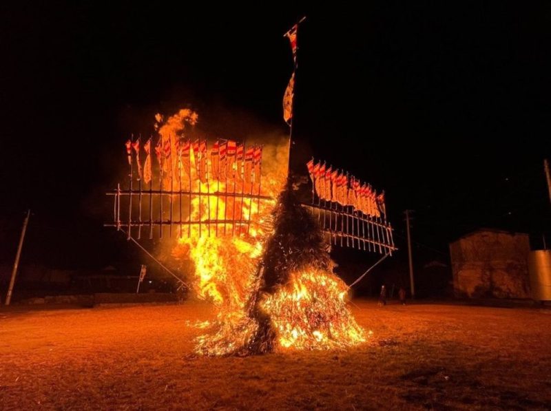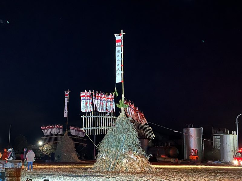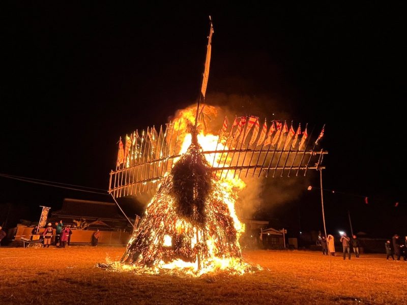 「とうどまつり」は、お正月に飾られた門松やしめ縄などの正月飾りを集めて、櫓(やぐら)状に組み上げた「とうど」に火をつける伝統行事です。炎の力で一年間の無病息災や家内安全を祈願します。