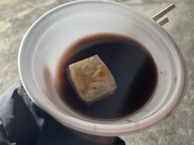 約15分の船旅で大島に到着。まだ辺りは暗く寒さが厳しい朝でしたが、地元の方々が島内外の参加者に向けて、温かいぜんざいと豚汁で心づくしの接待をしてくださいました。冷えた体が温まり、ぜんざいの甘みが身に染みました。